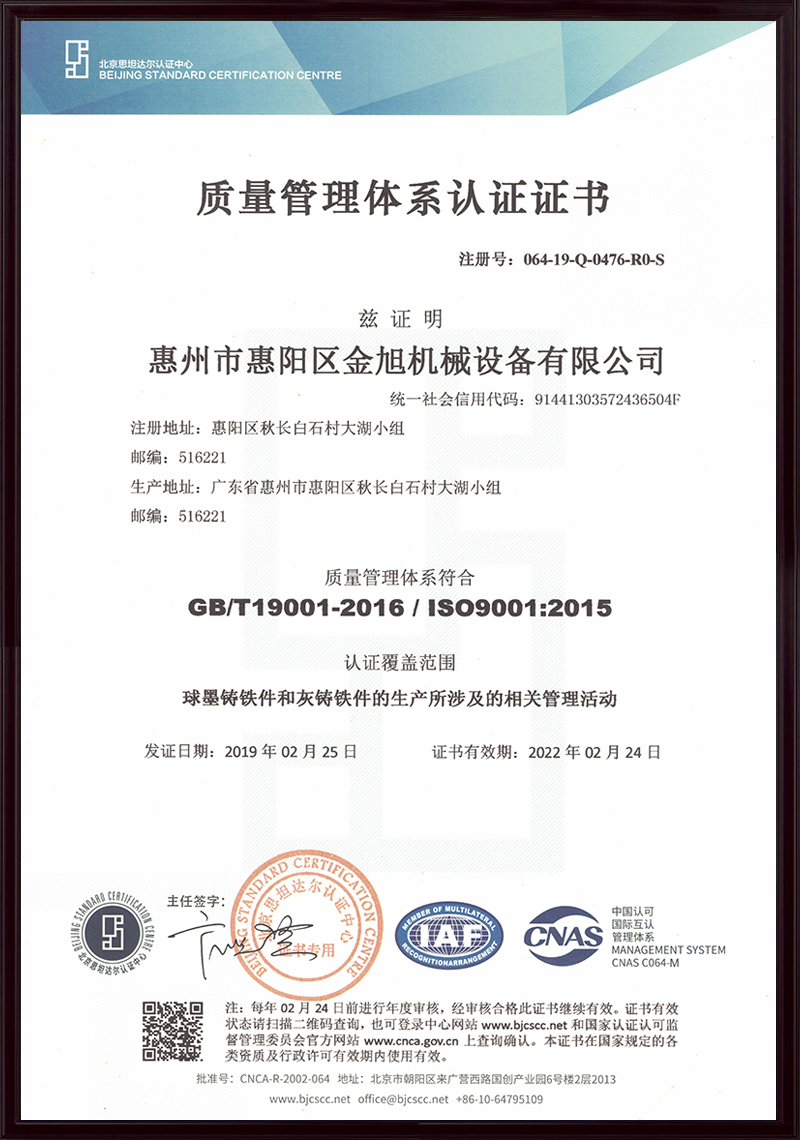 惠州市惠陽區(qū)金旭機(jī)械設(shè)備有限公司(原名深圳金泉鑄造廠),始建于1992年2月,公司坐落于惠州市惠陽區(qū)秋長(zhǎng)白石大湖工業(yè)區(qū),是一家集模型、鑄造、機(jī)械加工于一體的綜合型企業(yè),主要生產(chǎn)高強(qiáng)度高韌性球墨鑄鐵、灰鑄鐵及鑄銅、鑄鋁等各種材質(zhì)及牌號(hào)鑄件。